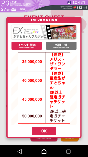 ・45000万、5000万の報酬はどちらも「SR以上確定ガチャチケット」