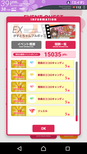 イベントクエストもキャンディのドロップ率が高めな程度で、あまり旨味はなし。