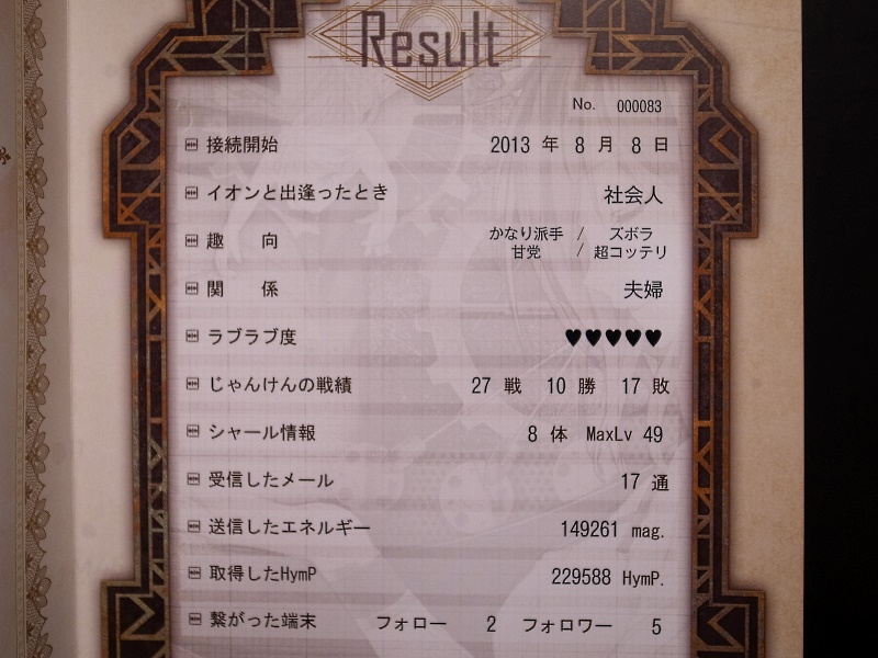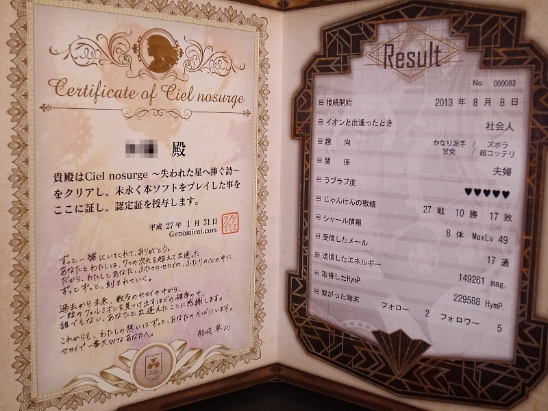こちらもデザインの変更は無いものの、賞状らしい「ジェノミライ」の判子マーク、「結城寧」からのメッセージが追加。