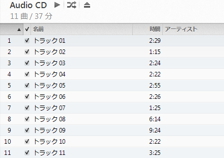 当然ながらCDDB登録なし、ゲーム進行状況に応じて内容が変わったり、トラック数も見聞きした限りでは10~15で増減するようです。