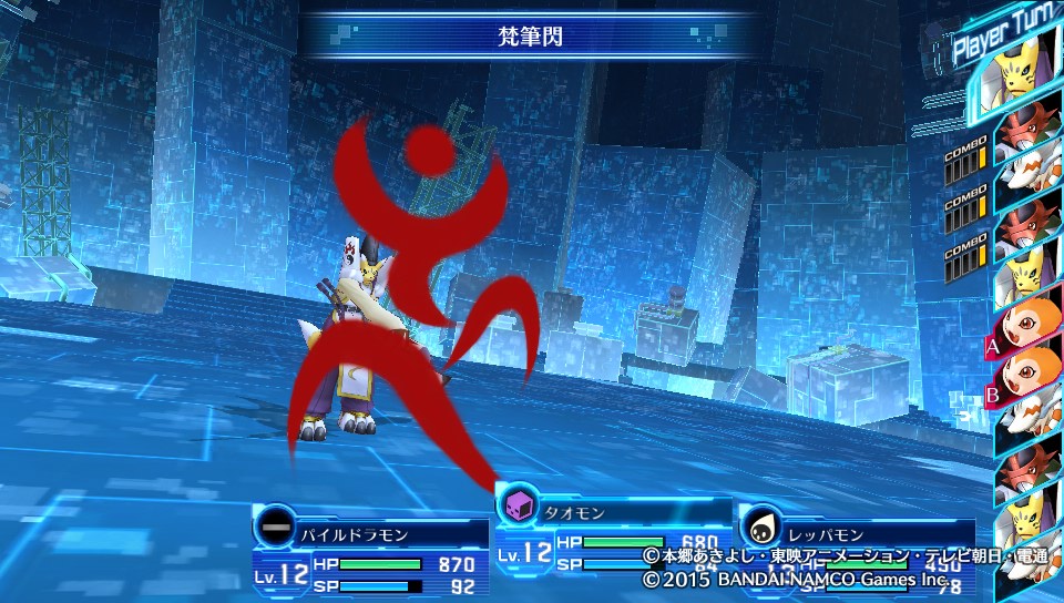 デジモン特有の水増し的な色違いが多少いますが、ほとんどのデジモンで勝利ポーズ・必殺技に固有の演出があり、見ごたえもあります。