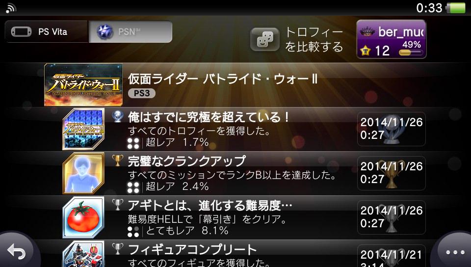 PS3『仮面ライダー バトライド・ウォーII』トロフィーコンプ [2014/11/27 03:21]